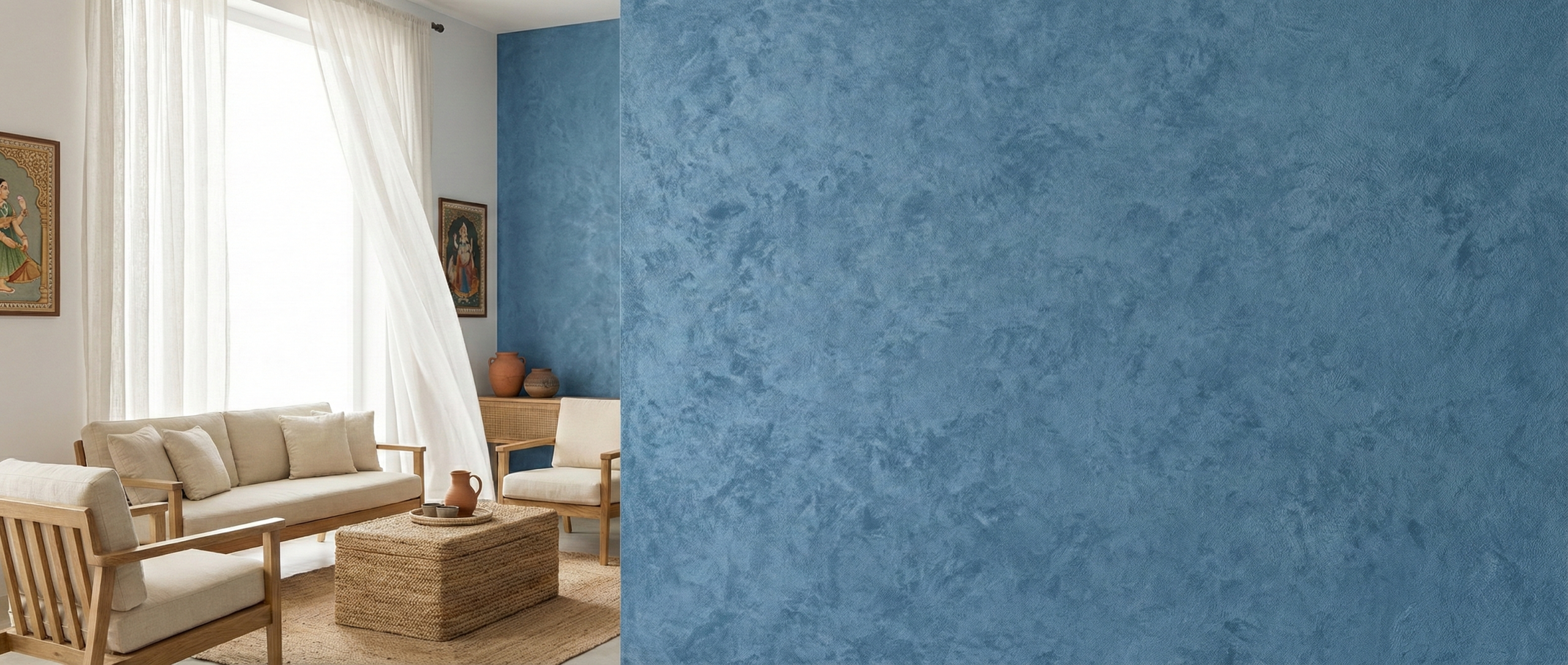 • Refined Mineral Matte Finish – Ojas Texture features a smooth, stone-inspired matte surface that delivers a soft, non-reflective appearance while enhancing the natural elegance of interior walls.