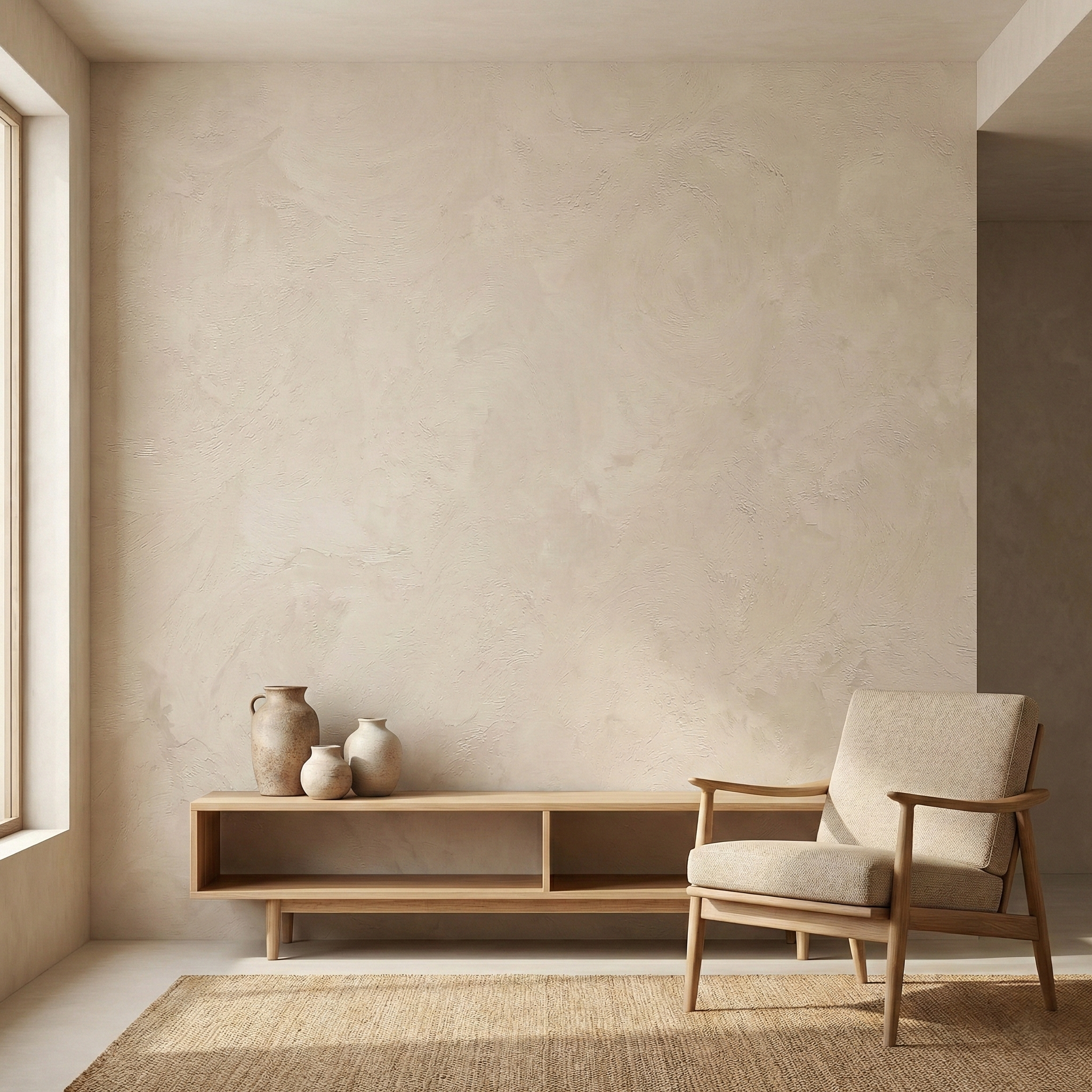 - • Elegant Plaster-Inspired Texture – The fine handcrafted grain pattern offers a delicate textural presence that feels natural, sophisticated, and softly dimensional.